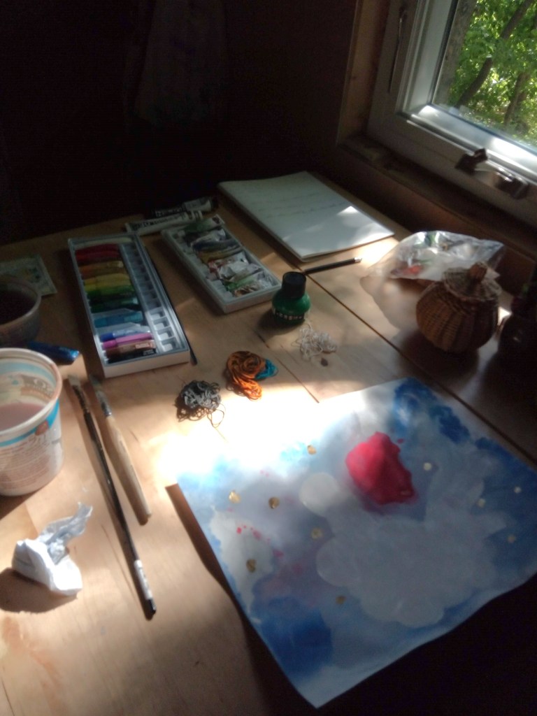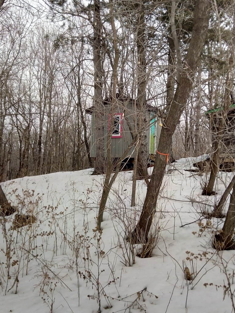 here is the creation of my tiny house at Kindred Farm my dear friend’s property for retreaters seeking solitude and support for the creative I am surrounded by trees there and do feel solitude and a creative joyful mystical even life force energy pulsing through me it is so magnificent and cozy
