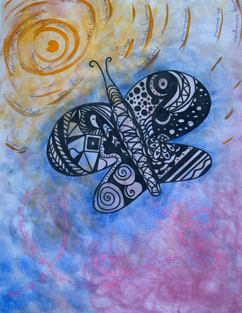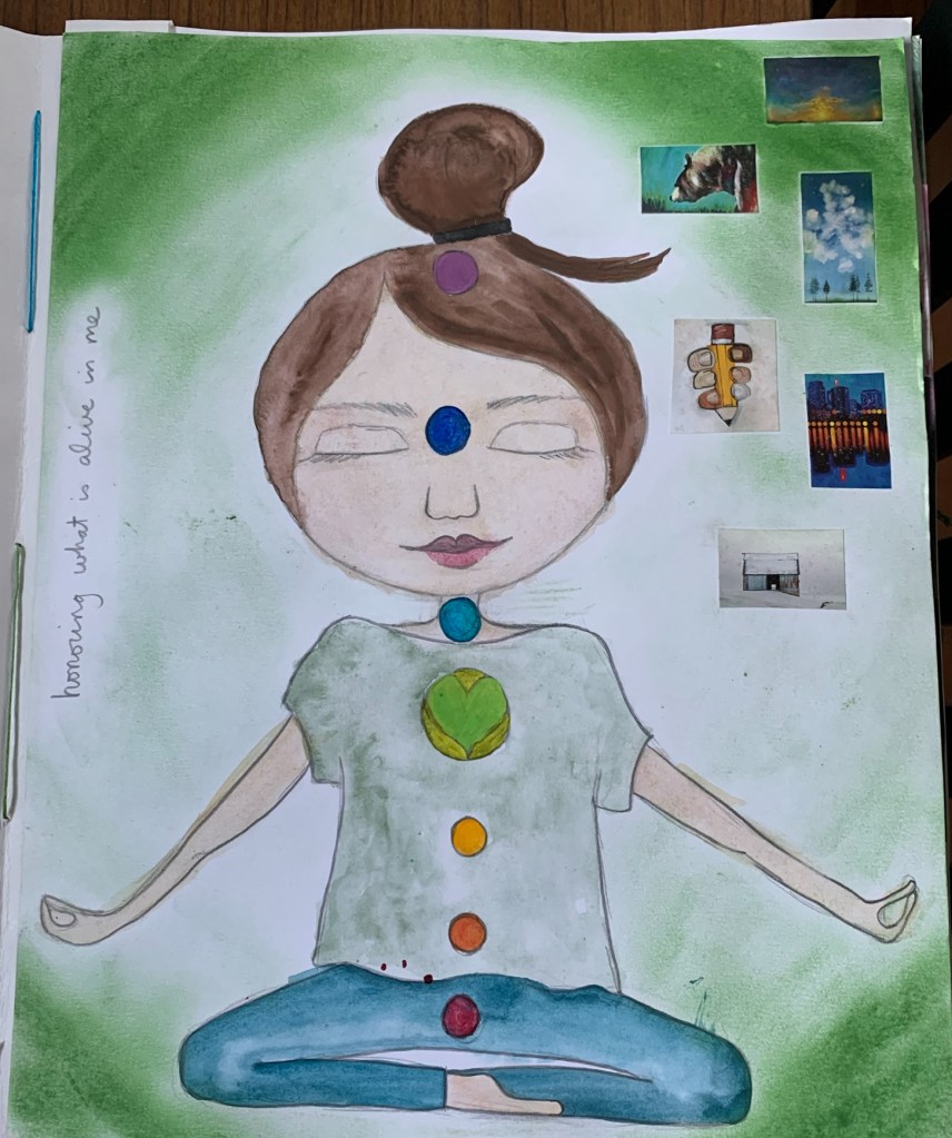 ah my life book a collection of self reflective art done using a lovely book of art and meditation prompts these images are chronological oldest first and that book is at the end