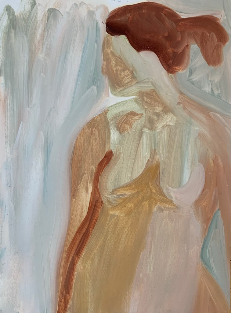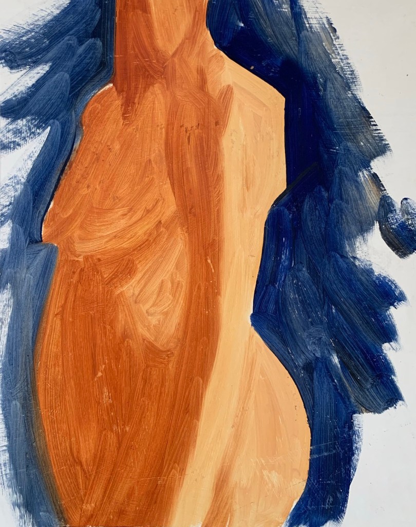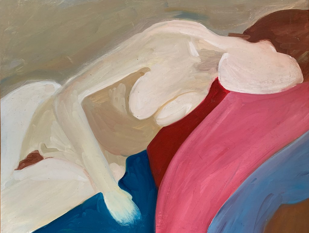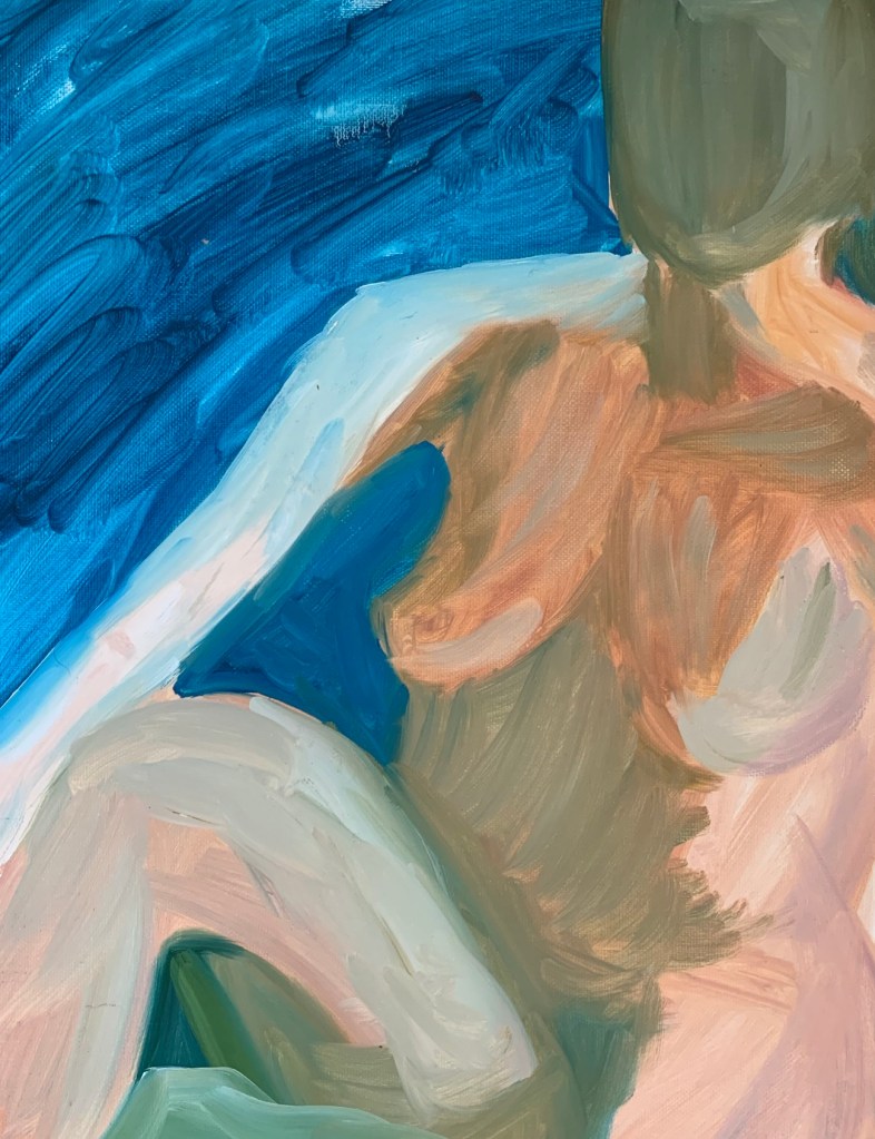 in art school drawing and painting from a nude model was common place I didn’t really like this it was too revealing especially drawing all the details of the body in graphite but i discovered if I concentrated on colors and shapes the abstracting distanced me enough to enjoy the flow of paints and create mood
